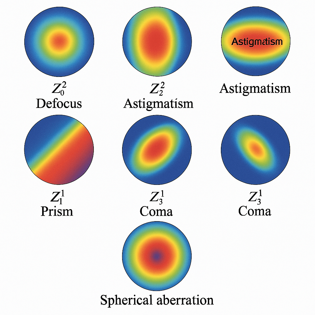 - Höga ordningens avvikelser – t.ex. koma, sfärisk aberration, trefoil